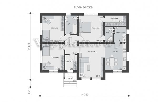 | Размеры дома: | 14.78м×11.08м |